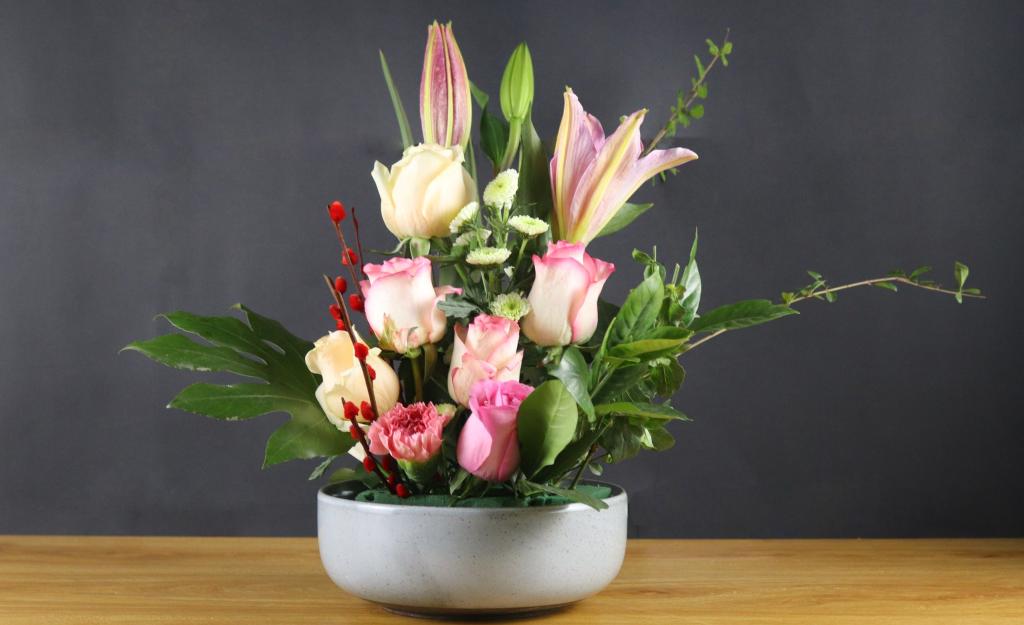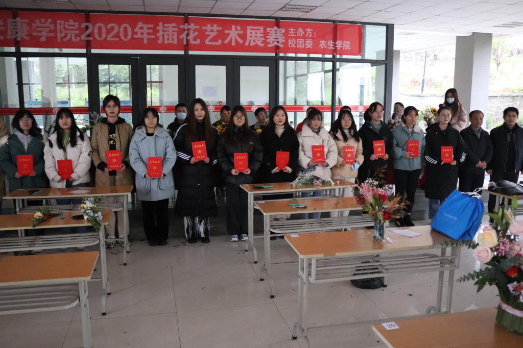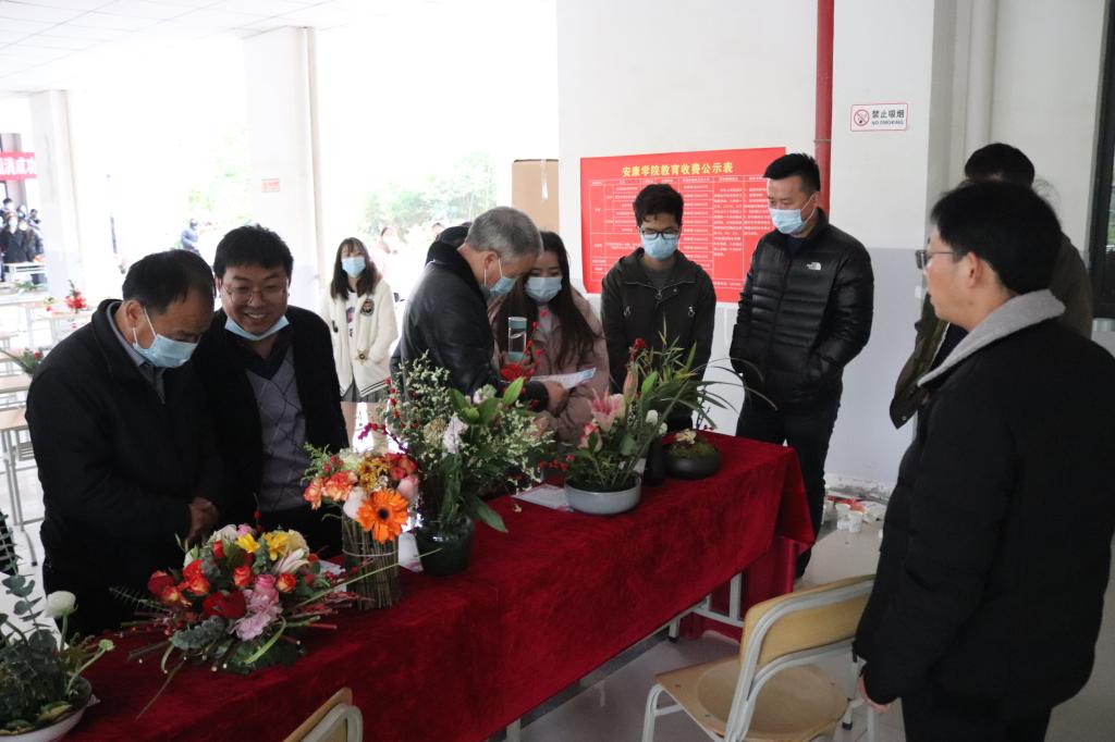 12月13日下午,由校团委、dhy80999主办,农生学院园林系、花卉园艺社承办的dhy809992020年“插花艺术展赛”在江北校区一号教学楼西大厅顺利举行。本次大赛特邀安康高新绿化工程有限公司副总经理丁新端、教育学院史丰教授,农生学院袁海龙、沈大刚、张海军、段展展等老师担任评委。农生学院党总支书记张纪生致开幕辞,副院长朱文东、旬阳紫薇园林花卉有限公司经理王国浪观摩了整场比赛。