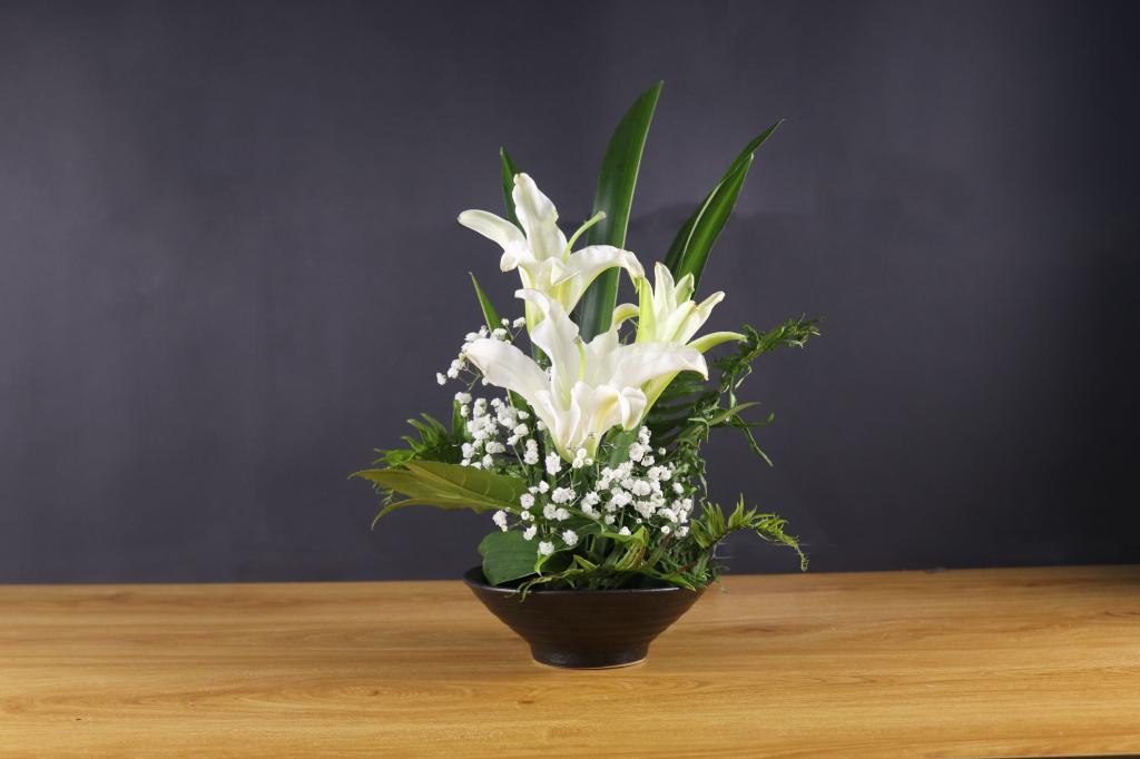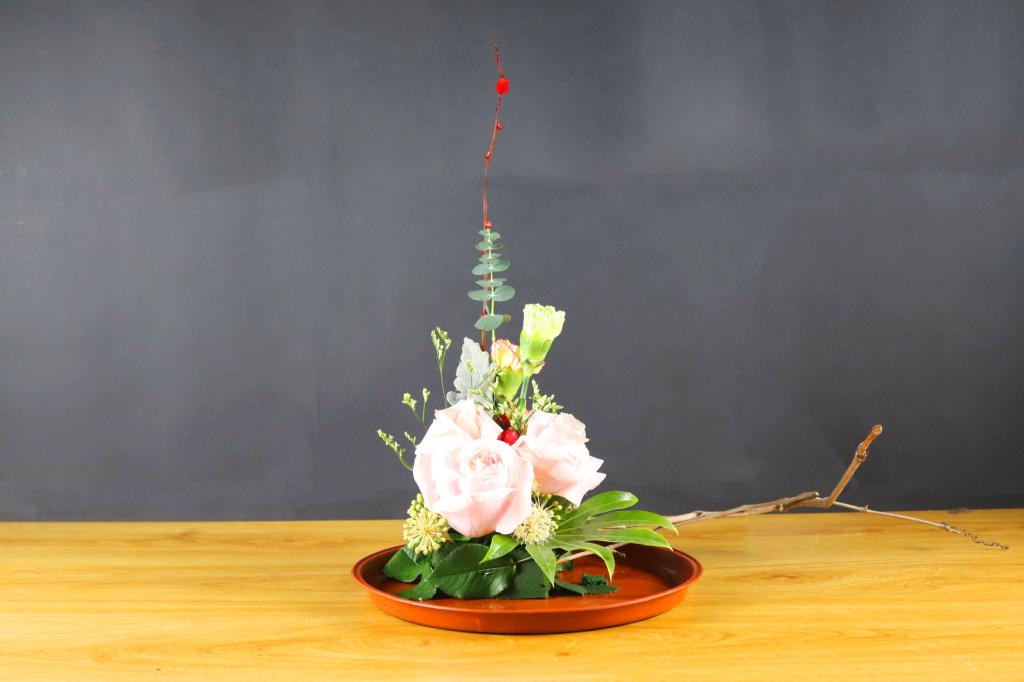 下午2:00,大赛正式开始。厅外寒风凛冽,厅内气氛热烈,各参赛选手依次排开,整齐有序。比赛过程中,选手们精心构思,从花材选择、色彩搭配、层次协调等方面各施技艺,一个多小时后,鲜花在独特的创意下变成了一件件充满艺术感的作品。随后,评委老师从作品的主题、意境、整体构图、造形、色彩搭配及艺术风格等方面进行了细致评定。最终农生学院2018级生物技术专业冯晗、王珍珍和2018级农学专业陈郦郡三人共同完成的作品《守望》荣获特等奖,2019级园林专业刘瑞、朱梦瑶、丁慧敏的作品《寸草春晖》荣获一等奖。