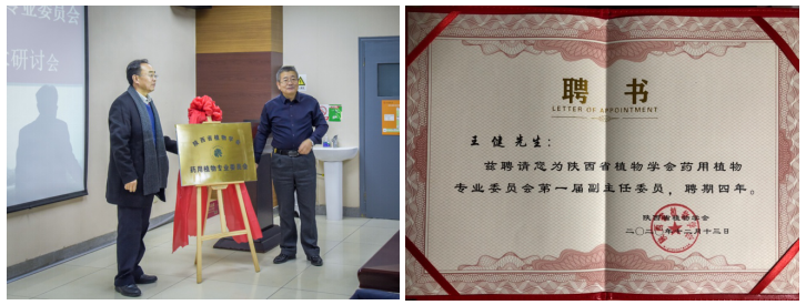 在此次研讨会上,首先由陕西省植物学会理事长岳明教授宣布了陕西省植物学会关于药用植物专业委员会成立的批复,并介绍了专委会组成及章程等。陕西师范大学副校长董治宝和陕西省植物学会理事长岳明为陕西省植物学会药用植物专业委员会揭牌,并为专业顾问颁发聘书。农生学院院长王健教授被聘为陕西省植物学会药用植物专业委员会副主任委员。
