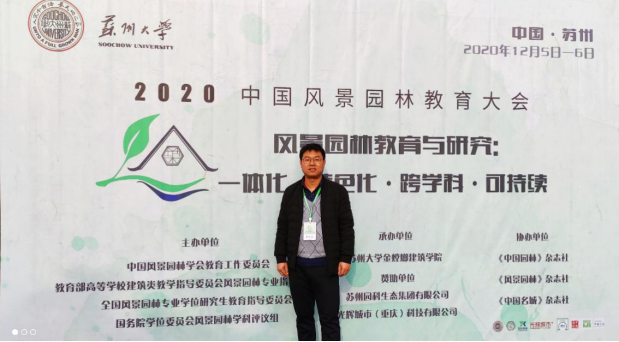 中国风景园林学会教育工作委员会、高等教育风景园林学科专业指导委员会、全国风景园林专业学位研究生教育指导委员会和国务院学位委员会风景园林学科评议组于2020年12月5日—6日在江苏省苏州市苏州大学召开2020年中国风景园林教育大会,此次会议主题为“风景园林教育与研究:一体化、特色化、跨学科、可持续”,全国各高校园林、风景园林专业教师400余人参加了会议,dhy80999园林系系主任段展展应邀参会。
