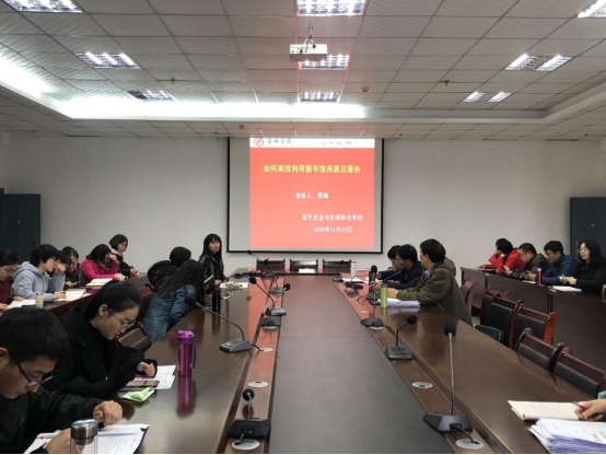 2020年11月25日下午,农生学院在逸夫科技楼9楼大会议室邀请图书馆贾娟老师为全体教职工做《如何高效利用图书馆资源及服务》专题讲座。