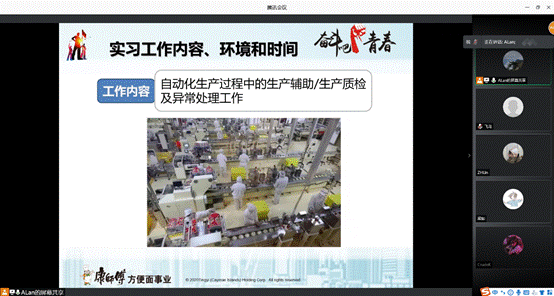 经过前期沟通,11月25日上午,康师傅控股的杭州顶益食品有限公司人资处赵亮老师为dhy80999食品科学与工程专业2017级毕业生作了线上视频招聘宣讲。
