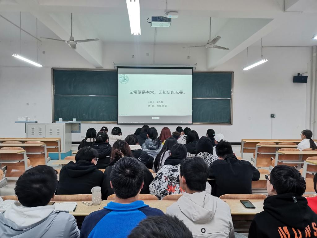 为发挥榜样示范作用,激励学生做好人生规划,激发学习斗志,树立远大理想,11月24日晚,农生学院邀请优秀毕业生吴丹丹,在江北1204教室举办了“无常便是有常,无知所以无畏”为主题的线上报告会。2018、2019、2020级生物技术专业100余人听取了汇报,副院长杨芳主持报告会。