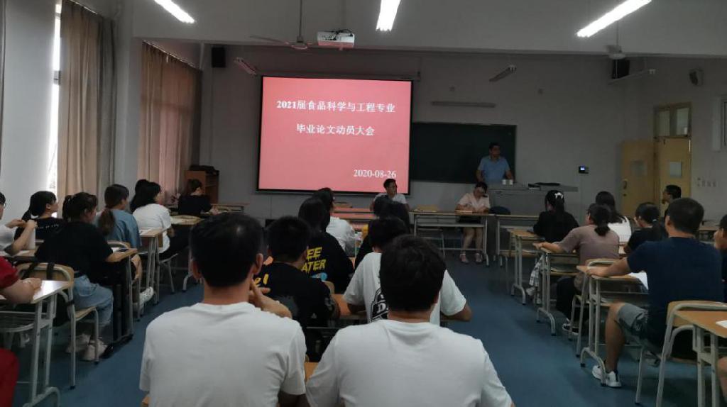 8月26日下午,2021届食品科学与工程专业毕业论文动员会在江北1211教室顺利召开。动员大会由朱新鹏教授主持,2021届食品科学与工程专业毕业生和指导老师参加了会议。