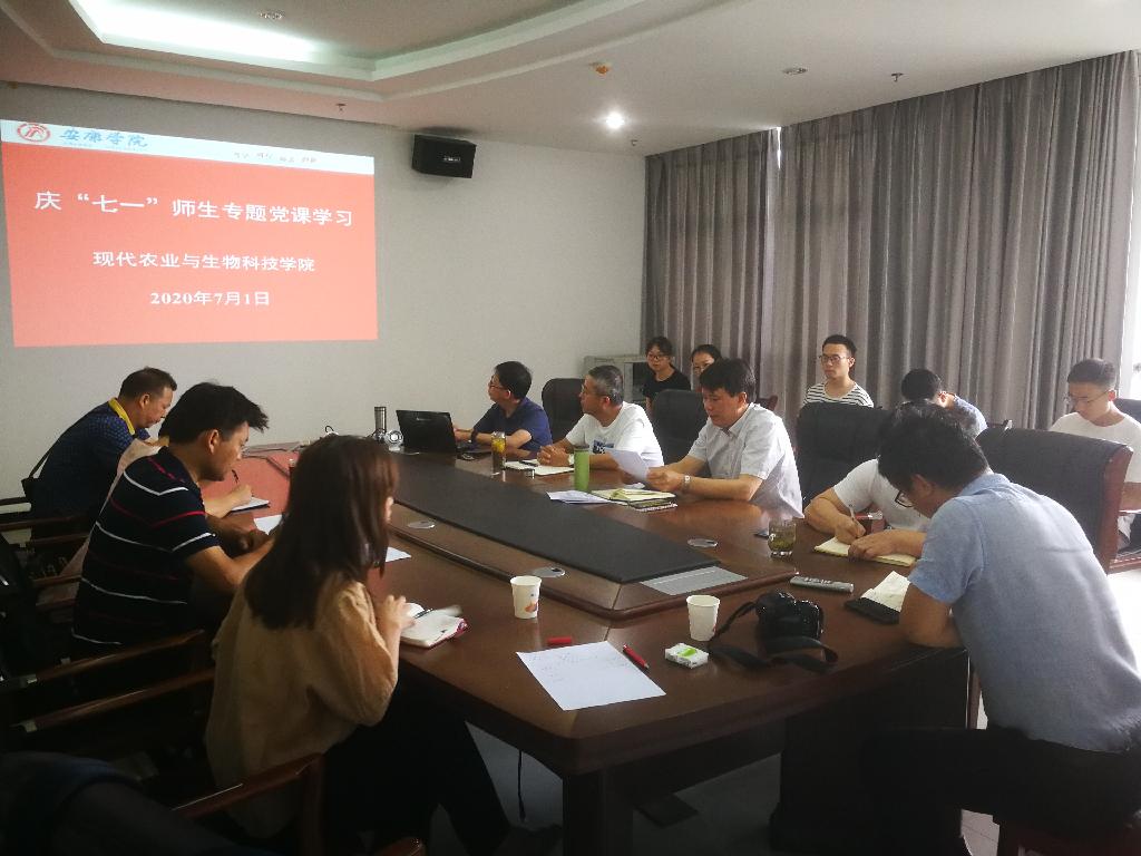 7月1日上午,农生学院党总支组织领导班子、各支部委员、辅导员及在校学生党员在逸夫科技楼小会议室集中收看了高校党组织战“疫”示范微党课“七一”专题节目。