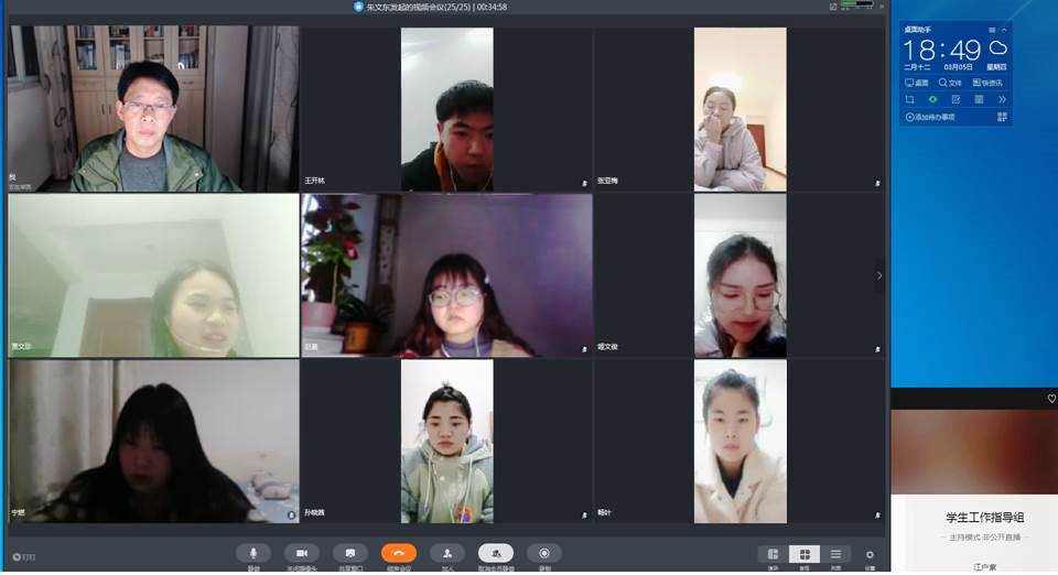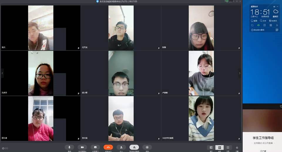 会议伊始,朱老师提醒大家在疫情防控期间,要严格按要求做好防控工作,确保自己及家人的安全。介绍了本次视频会议的主题内容、流程及目的。朱老师说,目前返校日期尚未确定,但时间不等人,全体同学居家期间应合理安排好自己的学习,特别是毕业班同学需按正常开展毕业论文相关工作,不等不靠,提前把毕业论文各环节工作安排好,已完成论文试验的同学,要按时完成论文撰写工作,非毕业班同学要克服各种困难,严格按学校和授课教师的要求参加好线上学习,积极与老师互动,完成老师布置的各种学习任务。