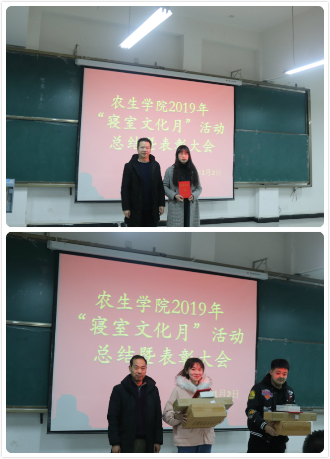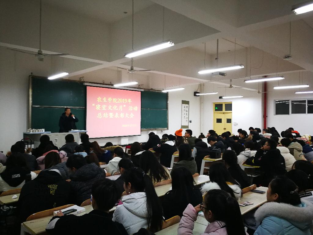 1月2日晚,农生学院第四届寝室文化月活动总结暨表彰大会在1201教室顺利召开。农生院学生分会主席团、团总支副书记以及19级全体同学参加了本次活动。党总支书记屈国胜及辅导员参加了表彰大会。