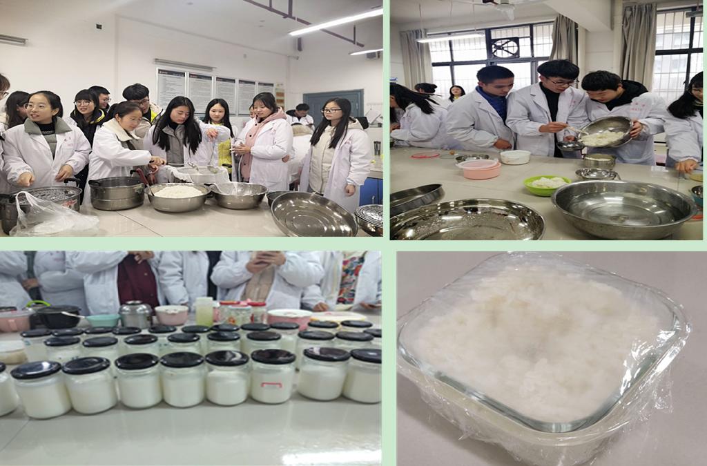 年12月23日-12月27日,dhy809992018级食品科学与工程专业学生在陈芳和朱新鹏两位老师的带队指导下,顺利完成食品微生物课程一周的实验技能实训教学任务。本次食品微生物课程实习内容主要包括:参观见习传统发酵食品白酒、食醋及酱油等食品微生物发酵生产技术以及制备工艺流程;制作分析评价常见发酵食品酸奶、醪糟和腐乳和食品微生物接种、分离纯化、检测等无菌操作技术。