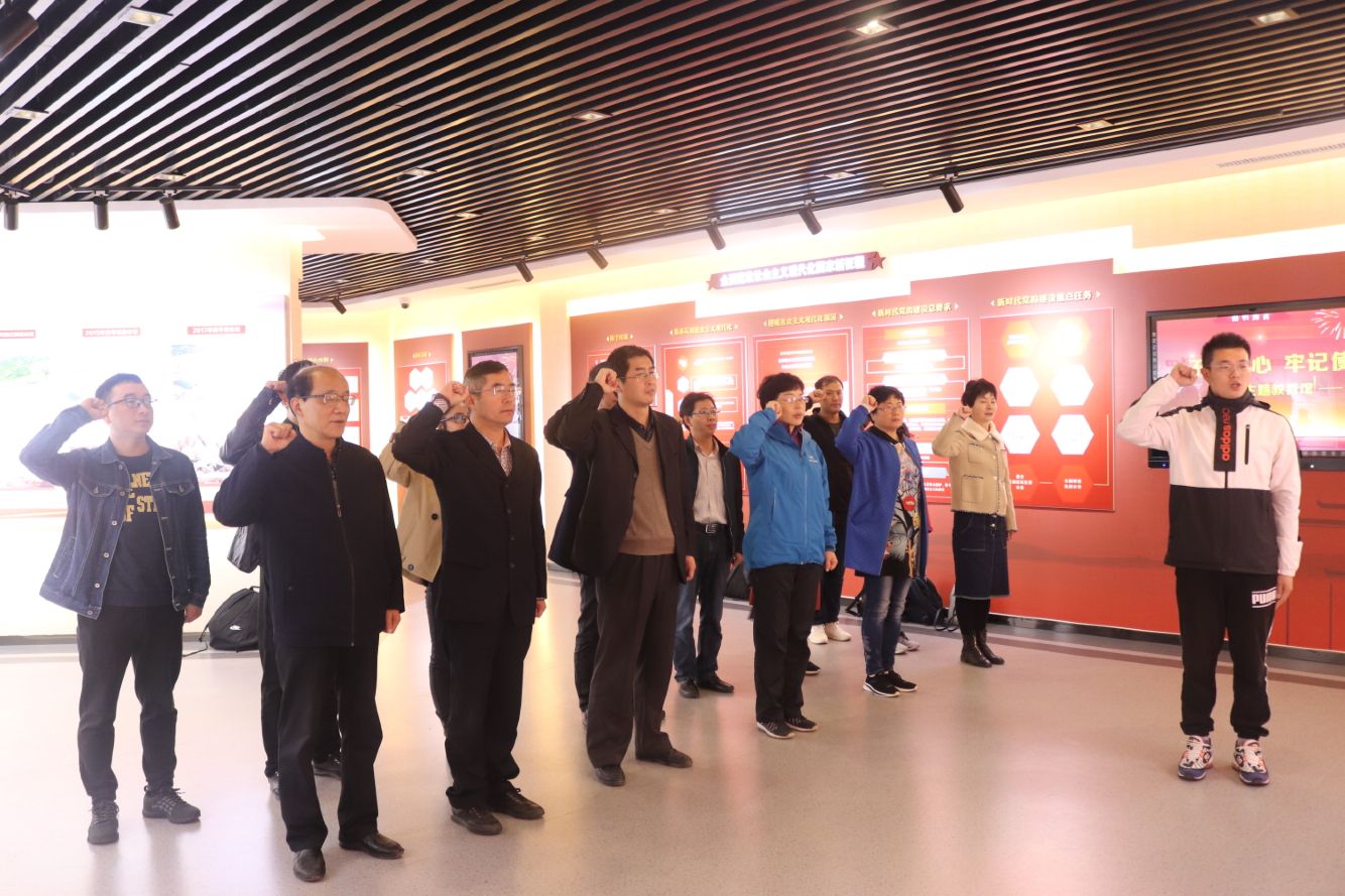 宣誓区,全体党员重温入党誓词,表达了教育报国守初心,立德树人担使命信心和决心。