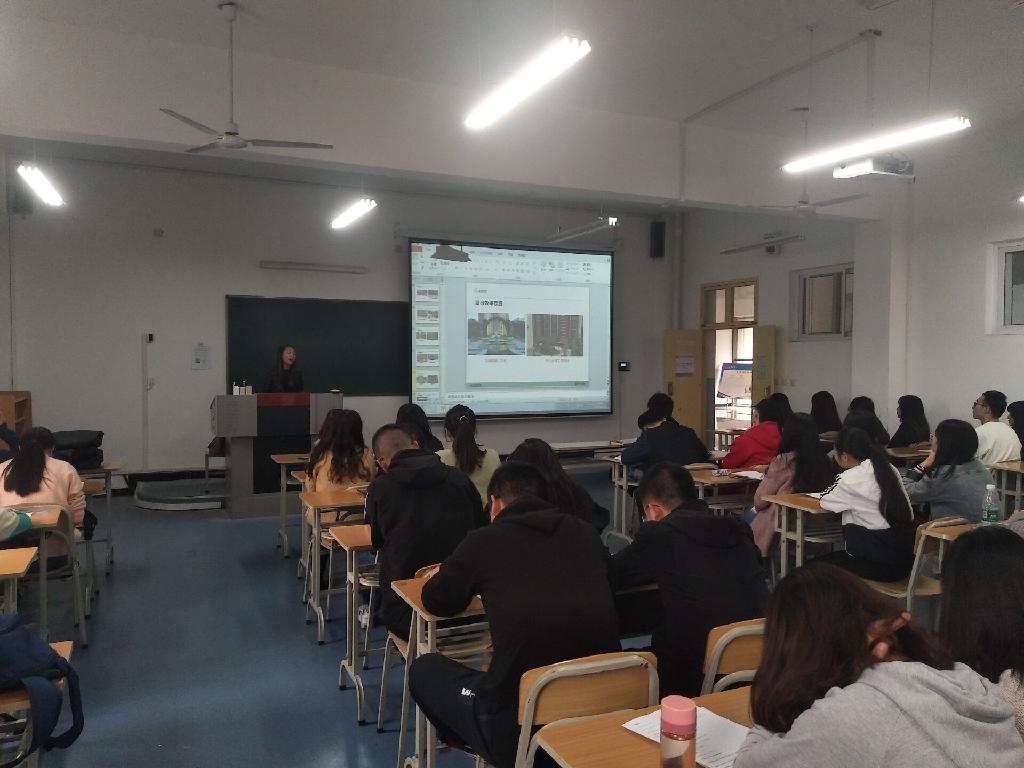 会上,陈佳丽就公司的基本情况向同学们做了介绍。公司是专业从事园林景观设计、施工、园林绿化养护、苗木销售为一体的综合性专业化的园林绿化公司,公司自成立以来,先后与中海地产、中建地产、龙湖地产等多家地产公司建立了良好的合作关系。随后展示了公司在工程设计方面的效果图,就公司薪资福利、岗位晋升等方面与同学们做了说明。