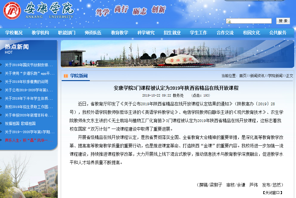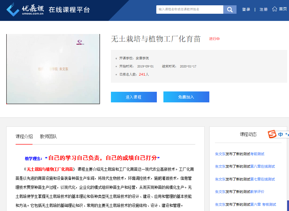 近日,农生学院农学系朱文东老师主讲的《无土栽培与植物工厂化育苗》被认定为2019年陕西省精品在线开放课程,这是农生学院获建省级农学一流建设专业来取得的又一成果,对进一步加强省级农学一流专业建设工作有着积极的作用。