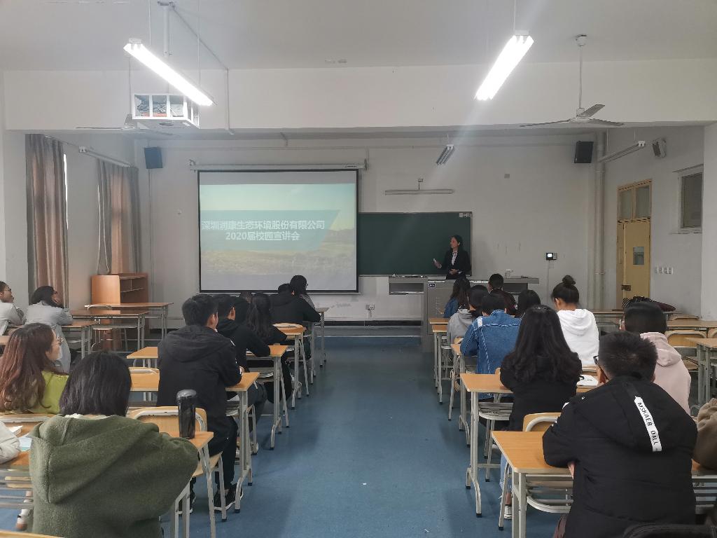 10月21日,深圳润康生态环境股份有限公司人力资源部部长党蕊娟、人资专员吴沙二位来到dhy80999,为dhy809992020届毕业生做就业指导并进行了校园招聘宣讲。