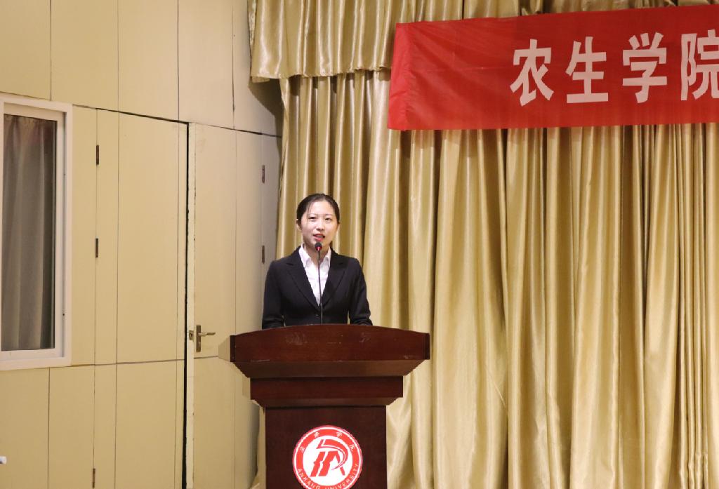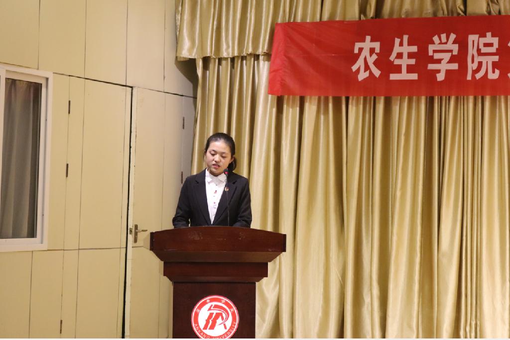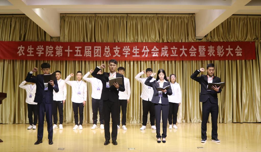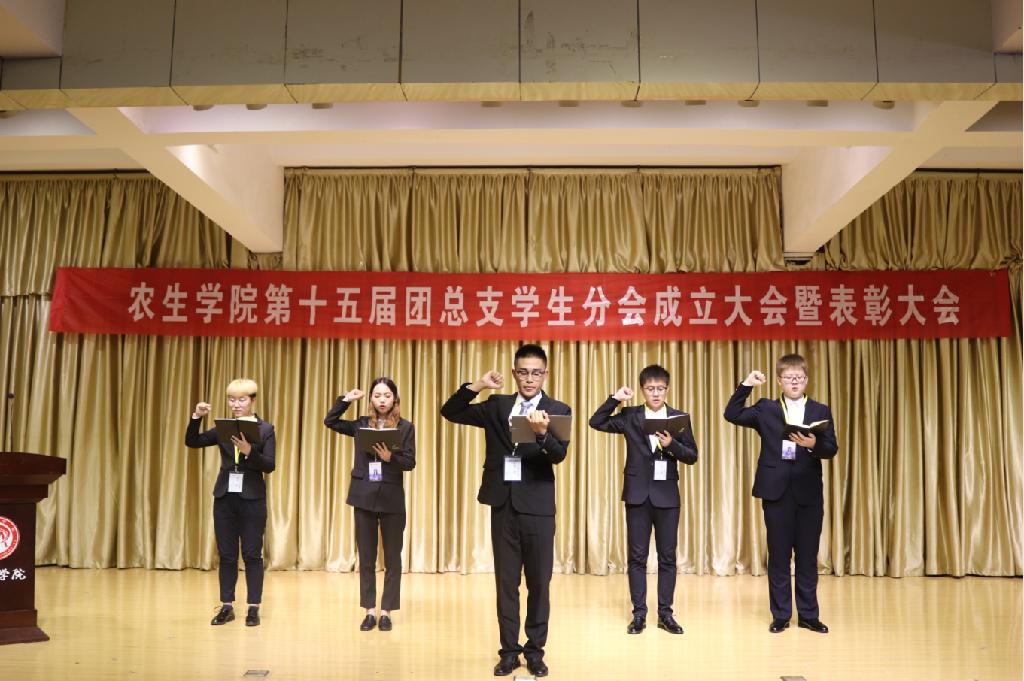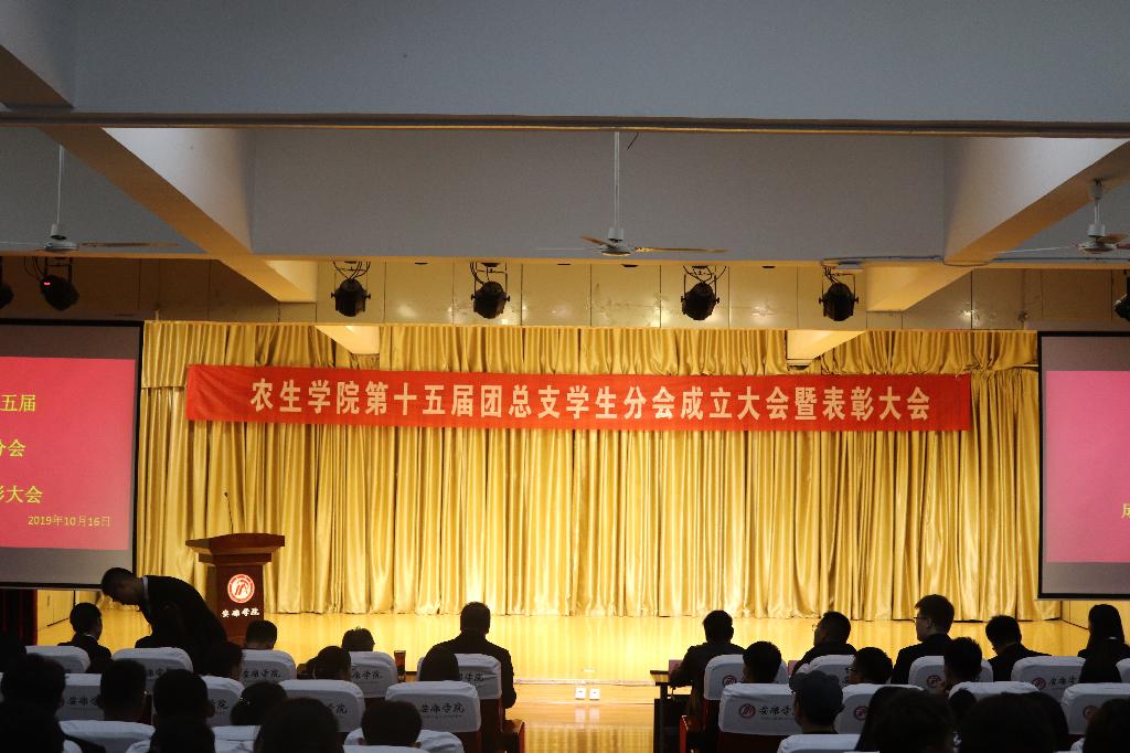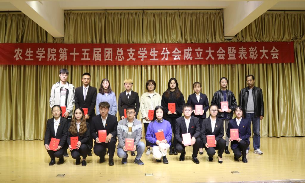 学工办主任谭自力宣布农生学院团总支第十五届学生分会正式成立。随后为即将离任的团总支、学生分会干部颁发了证书。宣读了2018-2019学年度优秀个人和优秀团体表彰名单。