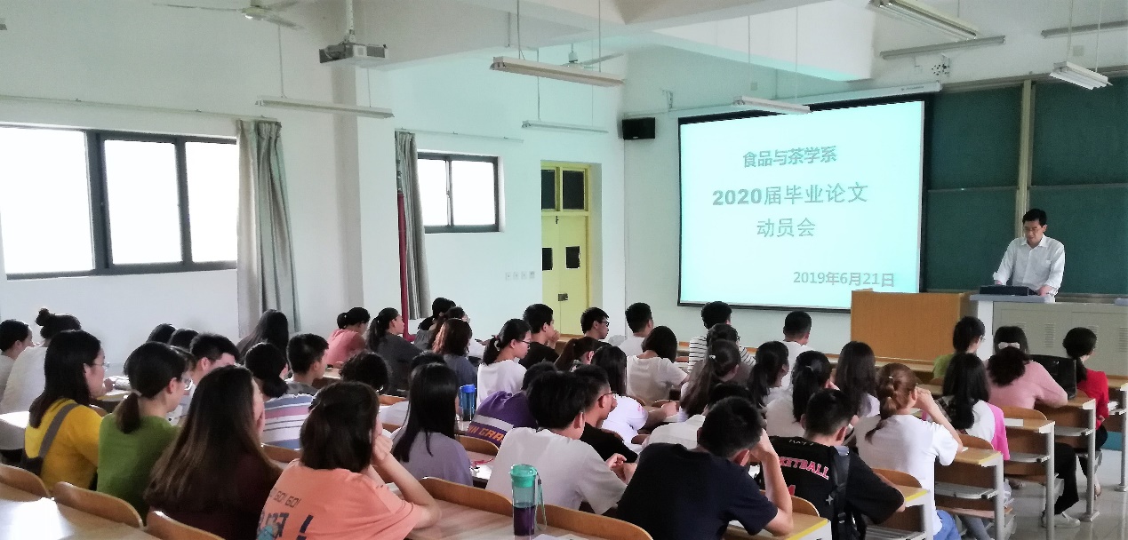 6月21日上午,食品与茶学系2020届毕业论文动员会在江北1114教室如期开展。参加会议的有食品与茶学系专业老师,食品科学与工程和茶学两个专业2020届的全体学生。动员会由食品与茶学系主任朱新鹏教授主持。