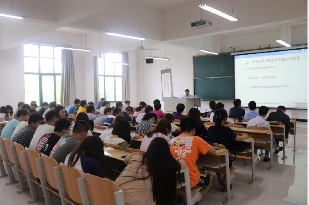 6月19日下午,副校长张东红为农生学院、电信学院师生在江北1201教室做题为:“中美贸易摩擦中看中美关系”专题报告会。农生学院、电信学院全体教职工、学生党员以及学生干部听取了报告会。报告会由农生学院党总支书记屈国胜主持。