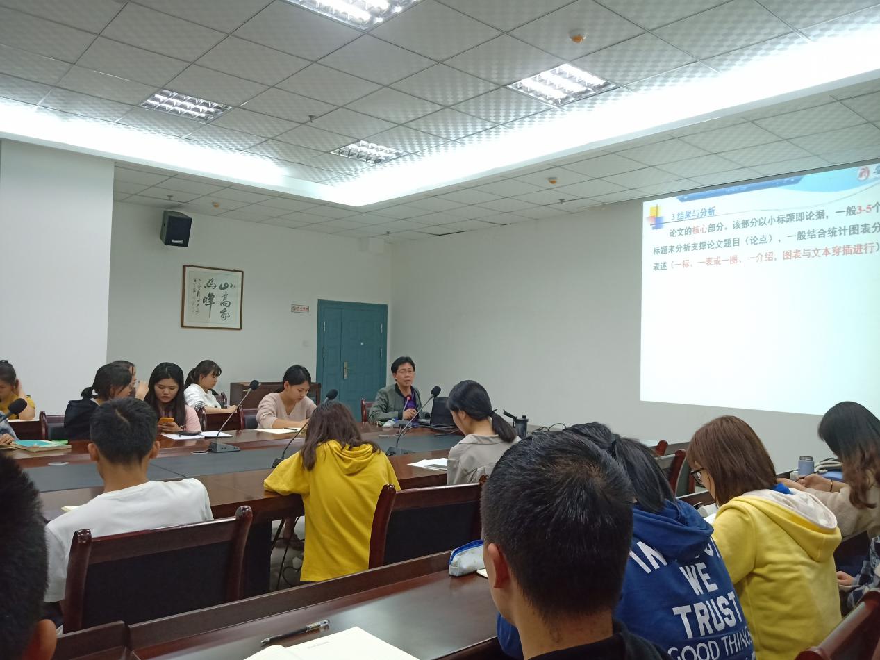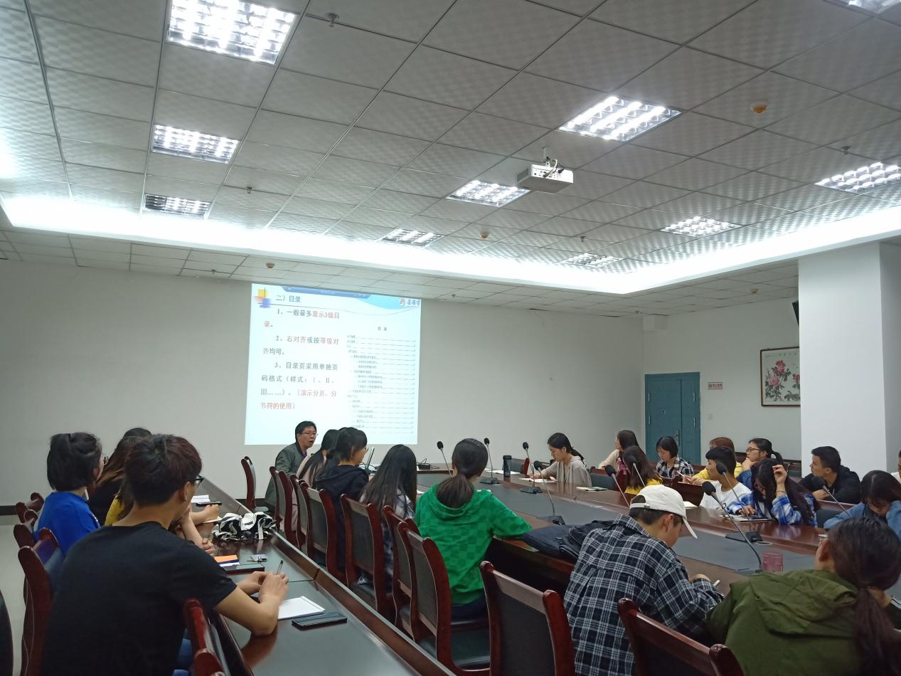 5月10日,在逸夫科技楼9楼大会议室,农生学院朱文东老师组织其毕业论文指导的农学15级、16级,学业指导的农学17级、18级及陈苏维老师指导的毕业论文组生物技术专业同学,共计30余人参加了针对本科毕业论文撰写及答辩专题培训会。