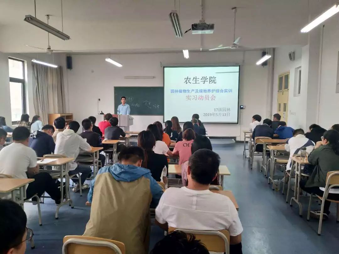 2019年5月13日上午8:30,在江北校区1220教室,农生学院园林系召开了园林本科2017级《园林植物生产及绿地养护综合实训》实习动员会。