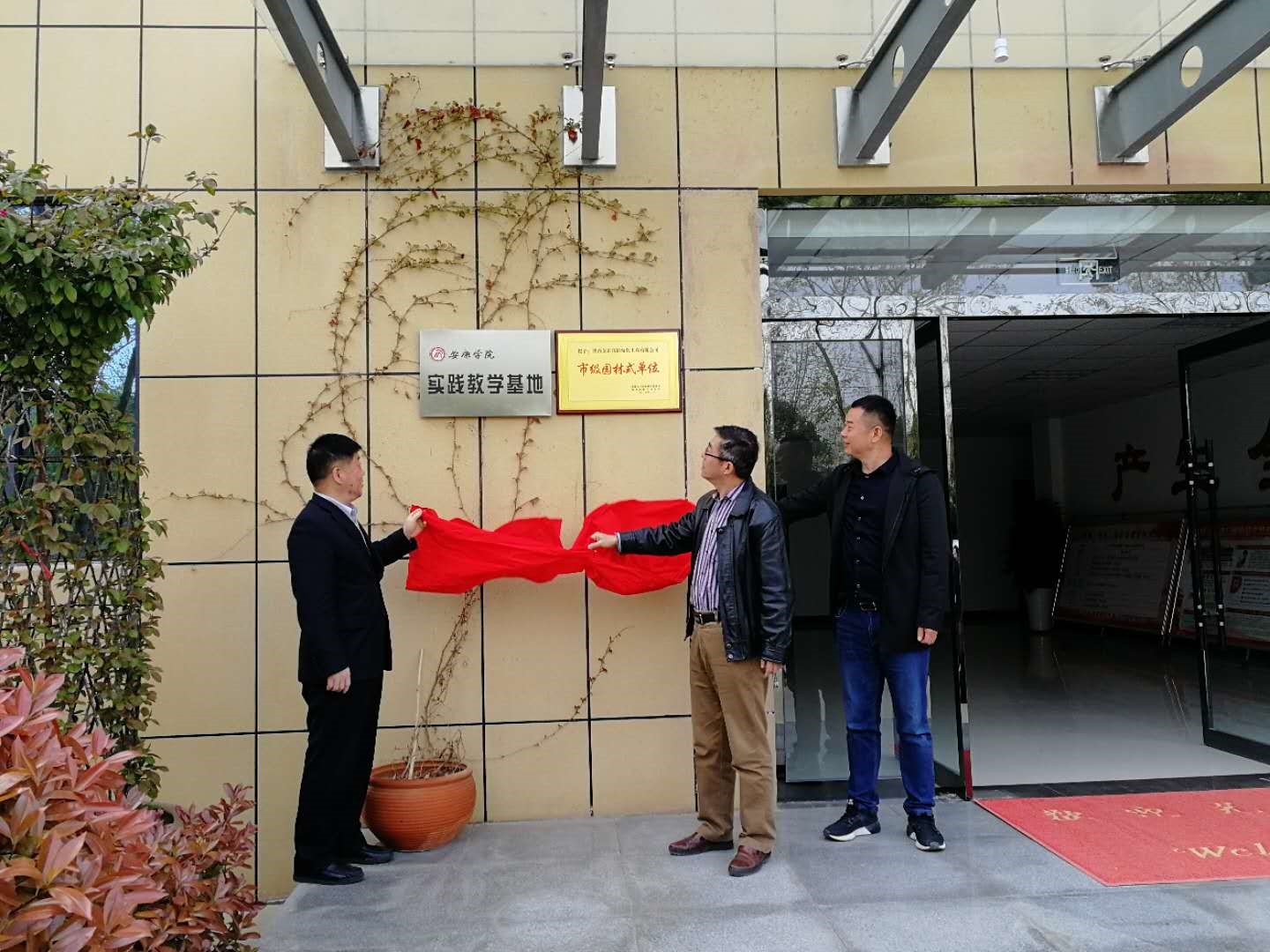 最后,杨松杰代表农生学院,徐信选和邱斌代表陕西安康高新绿化工程有限公司,共同为实践教学基地揭牌。