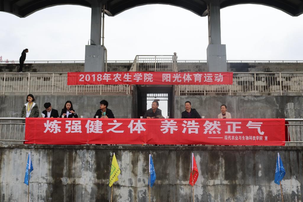 花开四月,醉美校园。4月14日上午9:00,农生学院迎来了2018年阳光体育运动会。各年级学生近600人在江北体育场进行了系列运动项目,总支书记屈国胜,辅导员谭自力、金清民、杨曼全程参加了活动。