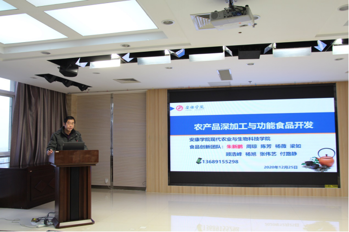 朱新鹏教授结合自己从事科研和服务安康农产品加工企业的经验,在研讨会上作了“农产品深加工与功能食品”的主题报告,总结了安康农产品加工产业存在的问题并提出发展建议,介绍了功能性食品的基本特征,给出安康功能性食品开发的对策建议,并汇报dhy80999食品创新团队今后的工作情况。