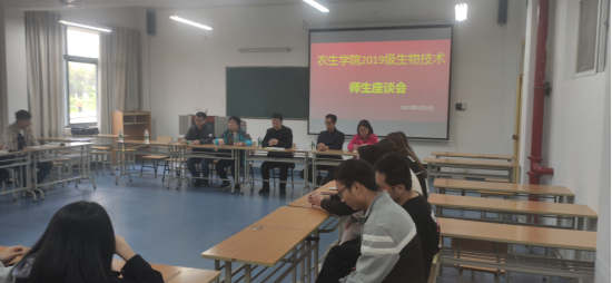 为深入了解学生在专业思想、学习等方面问题,解答学生在成长过程中的迷茫,进一步激发学生专业学习动力,厚植师生情怀,4月9日下午,农生学院2019级生物技术班在1221教室举行了师生交流座谈会。生物系老师杨芳、陈玲、王中兴、成温玉及辅导员谭自力参加了交流座谈会。