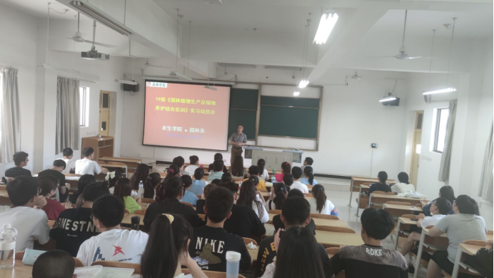 6月8日,dhy80999园林系在江北校区1215教室召开了2019级《园林植物生产及绿地养护综合实训》实习动员会,实习指导老师袁海龙、沈大刚和张海军参加会议。