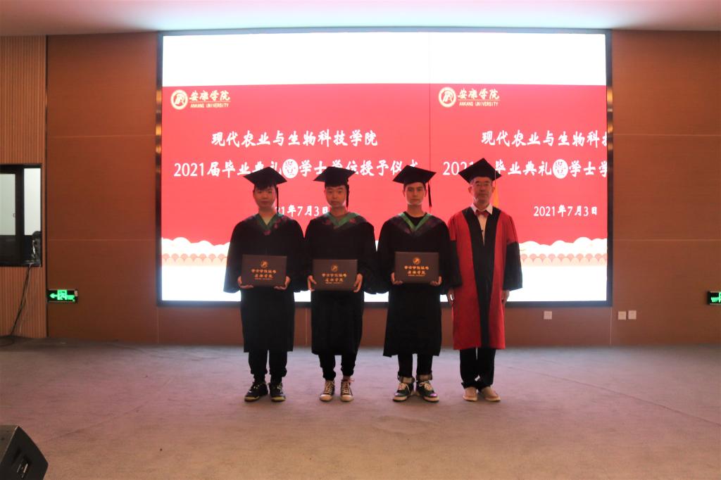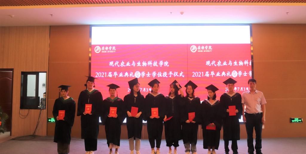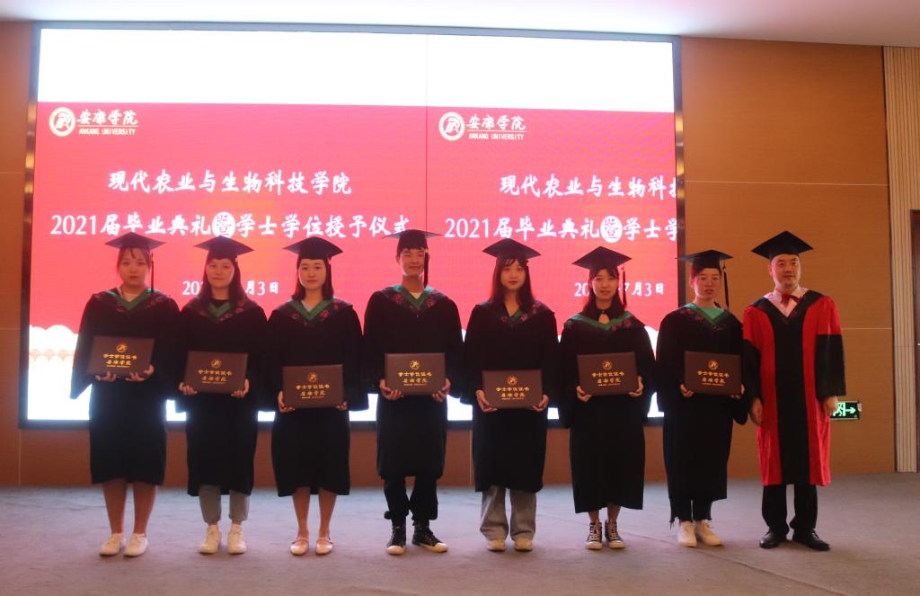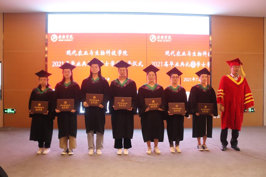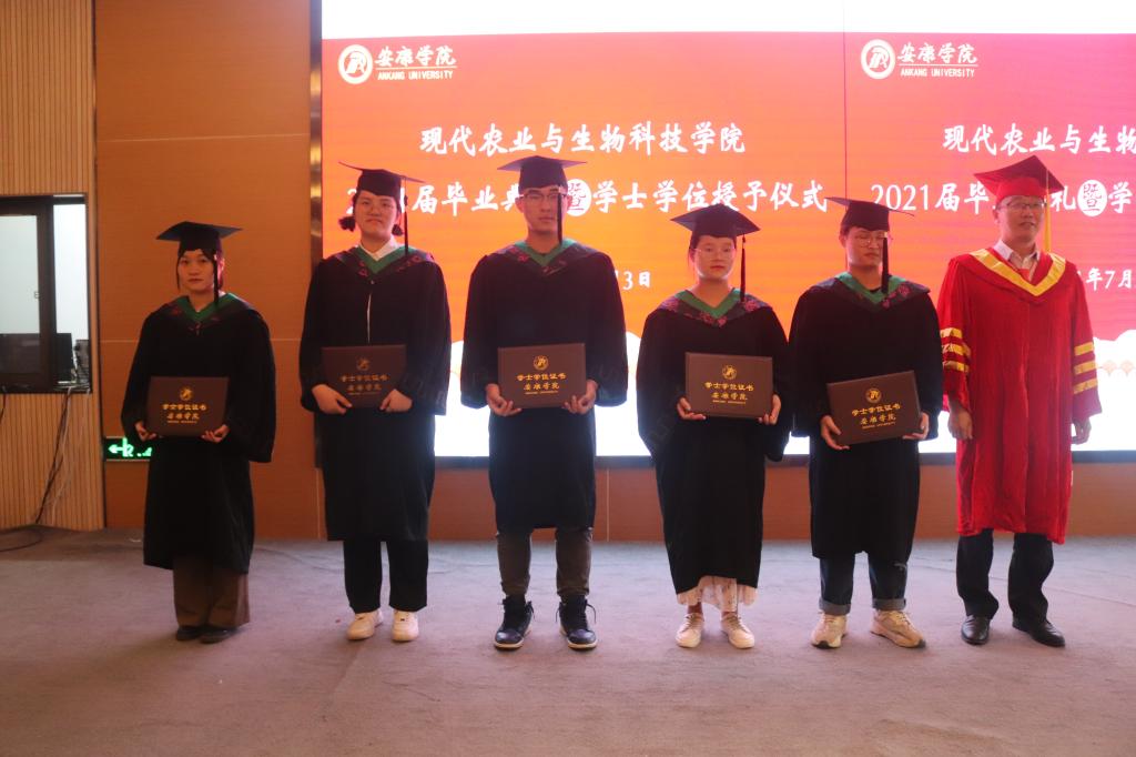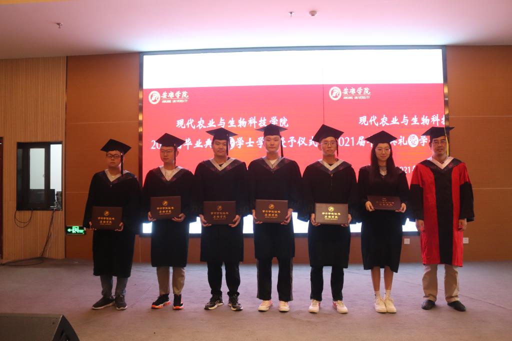 副校长张东红、学院教授杨松杰、王健、袁海龙、朱新鹏为2021届239位本科毕业生授予了学士学位证书并合影留恋。