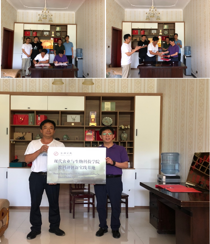7月9日,农生学院与旬阳县康俊源生物科技有限公司在旬阳县城关镇两岔河村举行了产学研合作协议签订仪式暨教科研创新实践基地揭牌仪式。副院长朱文东,前期筹划及对接企业负责人廖咸康副教授与王中兴、蒲小龙、解松峰、张桂粉、王楠、付路静等一行8位老师,旬阳县人大安黄新主任、城关镇办公室卢靖主任、两岔河村第一书记余伊庭及旬阳县康俊源生物科技有限公司张俊明总经理参加本次活动。