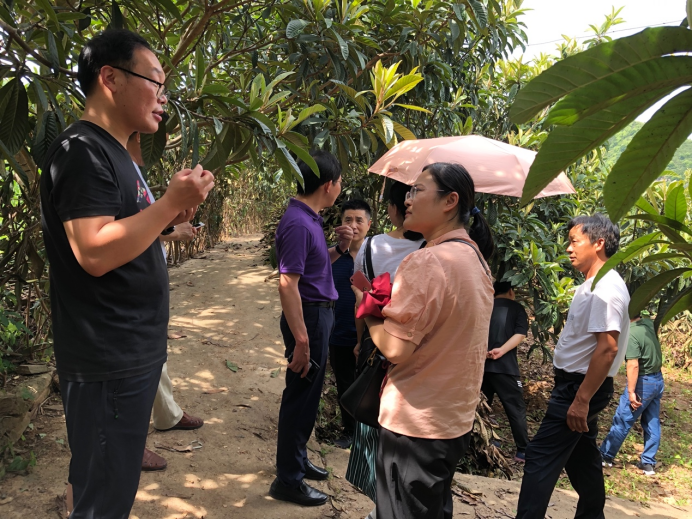 随后,在张俊明经理的带领下,农生学院教师团队赴基地参观了两岔河村枇杷种植园,现场针对枇杷栽培技术和病虫害管理等方面的问题进行深入交流和技术指导,并合影留念。