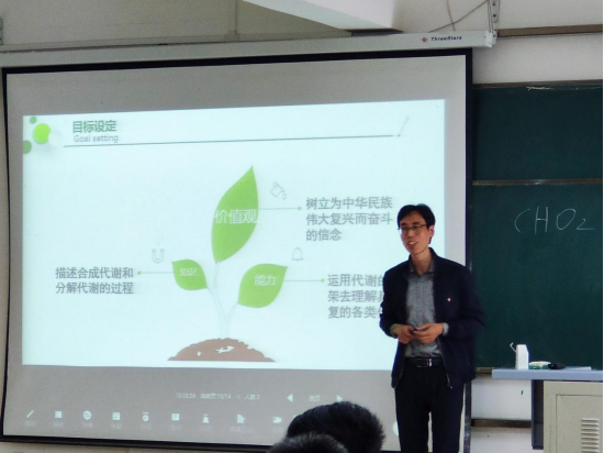 王中兴老师围绕“微生物的新陈代谢”中物质代谢的基本模式,先对知识点进行讲解和提问,随后通过“请思考,此刻的你更像是公式中的哪一个成分,为什么?”这样一个问题引导学生进行思考,接下来对学生的回答进行梳理,并引申出人生的价值在于奉献,尤其是当代青年学子,更应该秉承革命前辈的意志,在百年未有大变局的时代浪潮中,做到“我将无我,不负人民”。