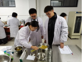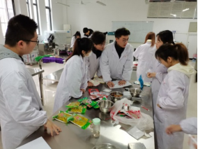 11月13日-14日,师生们放弃周末的休息时间,在食品工艺实验室进行产品的研制,通过对比试验,筛选出7种风味的即食产品,但都存在产品软烂不具有竹笋脆感的缺憾。经过反复实验,指导老师梁如启发学生回顾“食品化学”中关于果胶及其性质部分内容,寻找解决产品硬度不高的办法,最终经过进一步完善工艺,11月20日再次进行对比试验,产品的硬度脆度提高,产品研发实验成功。