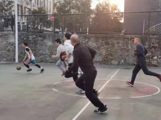 四点左右,参赛的老师和同学们早早的来到篮球场进行热身准备。随着口哨的吹响比赛正式开始,学生队迅速进入比赛状态,快速奔跑,精准中投,良好组织,比分超出教工队10多分。教工队迅速调整战术,靠着出色的配合,积极的跑位将比分慢慢缩小。上半场比分为40:30,学生队领先10分。下半场,老师们的状态越来越好,稳扎稳打,精妙配合,将比分反超,学生迅速调整自己的状态,接连命中中远距离投篮,近距离的上篮,将比赛推入白热化的阶段。双方队伍你来我往,互不示弱,十分激烈,最后以76比76平结束了这场的精彩篮球赛。