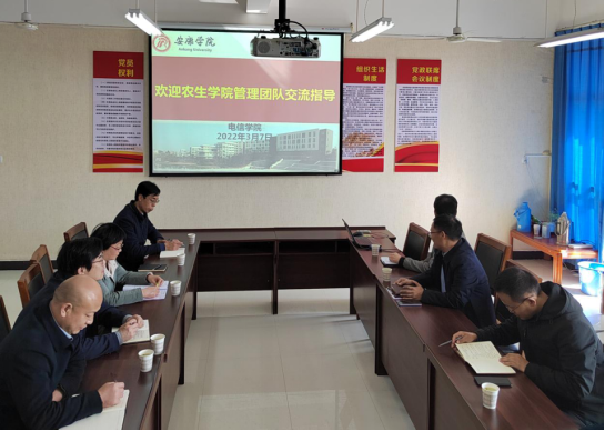 3月7日下午,在院长王健的带领下,dhy80999党政班子成员及院办、学工人员到电信学院开展院际交流活动,就党的建设、教学科研、学生工作和档案管理等方面进行互学互鉴。